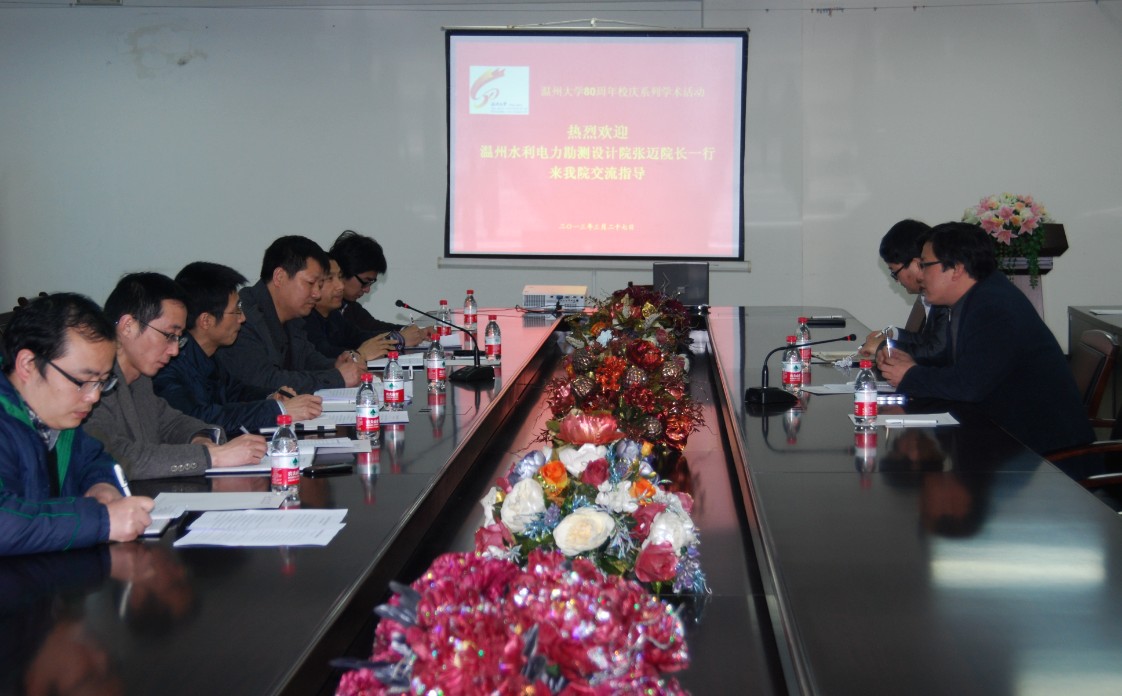 3月27日,温州市水利电力勘测设计院张迈院长一行来我研究中心访问交流,研究中心副主任孙林柱院长、王军接待来访客人。