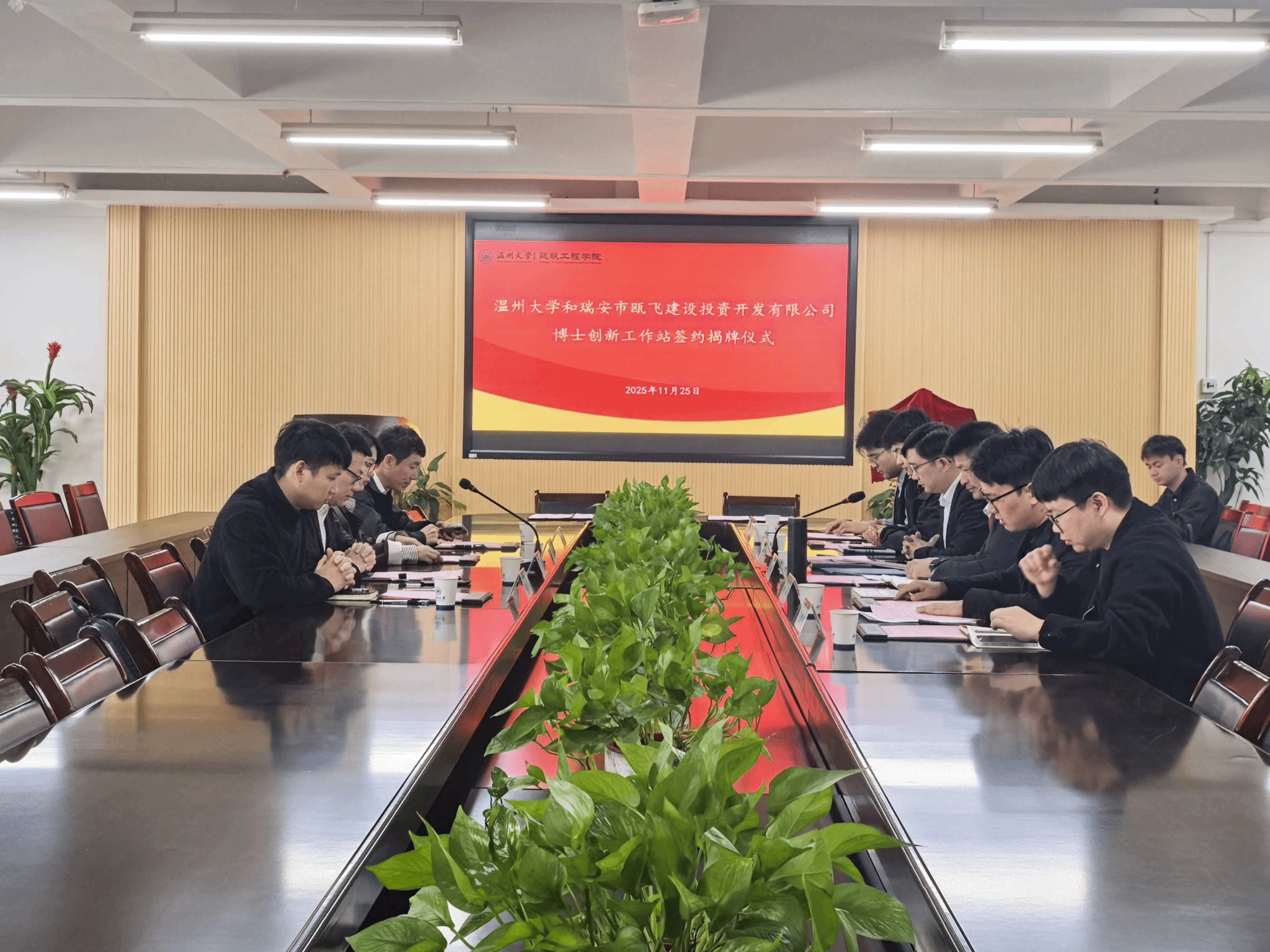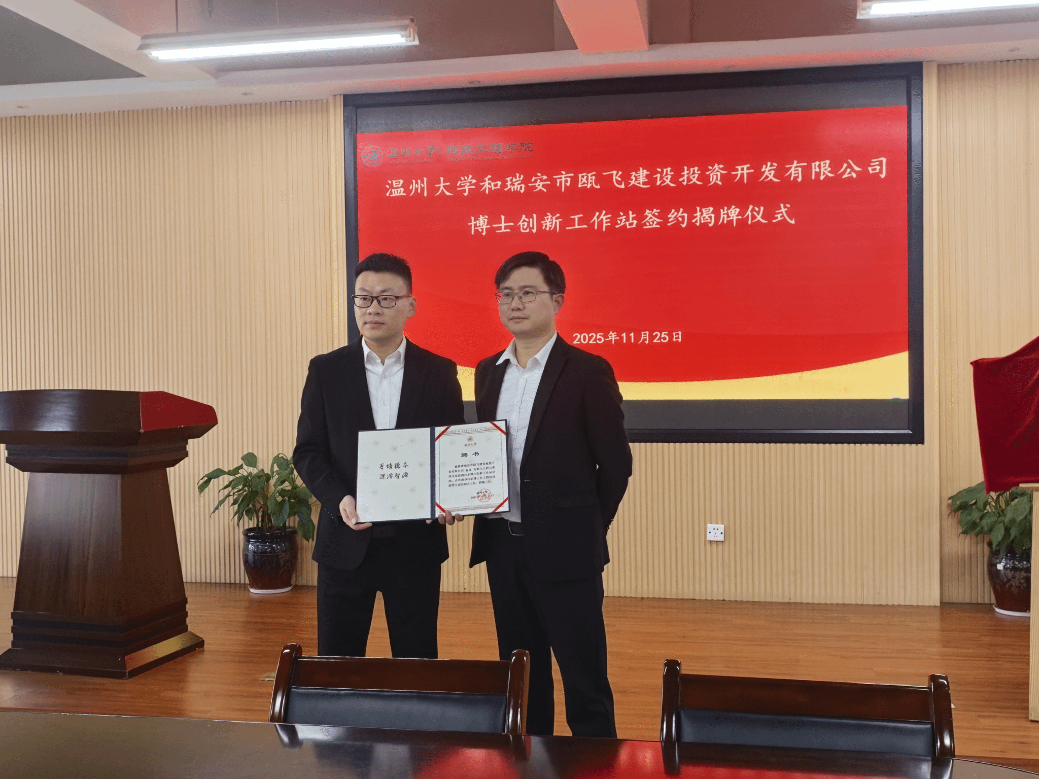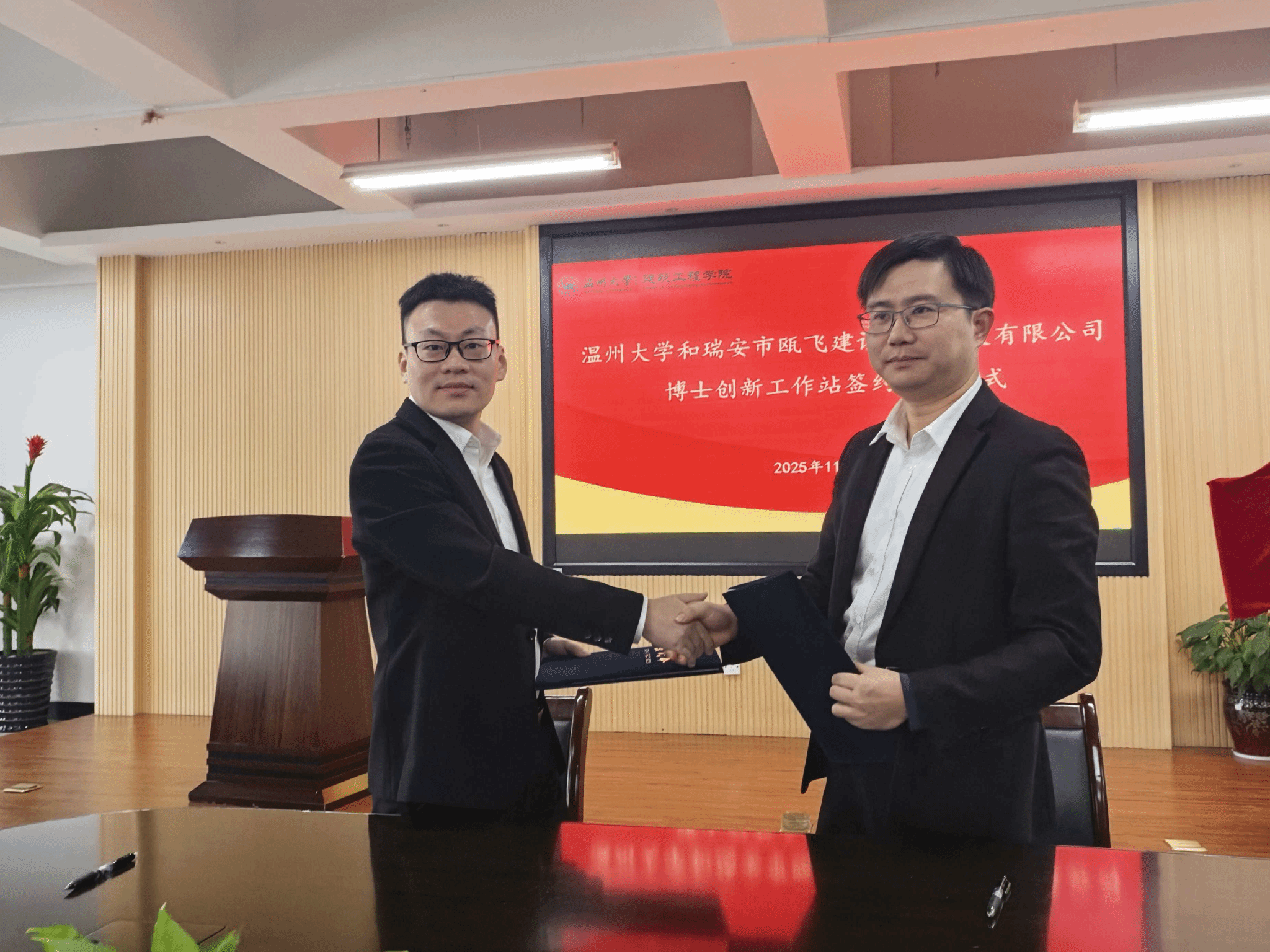 此次与瑞安市瓯飞建设投资开发有限公司共建博士创新工作站,是我院持续推进校企合作、服务地方发展的又一重要成果。双方将以工作站为平台,不断深化在技术研发、成果转化与人才交流等方面的合作,共同为温州区域经济社会高质量发展注入新动能、作出新贡献。