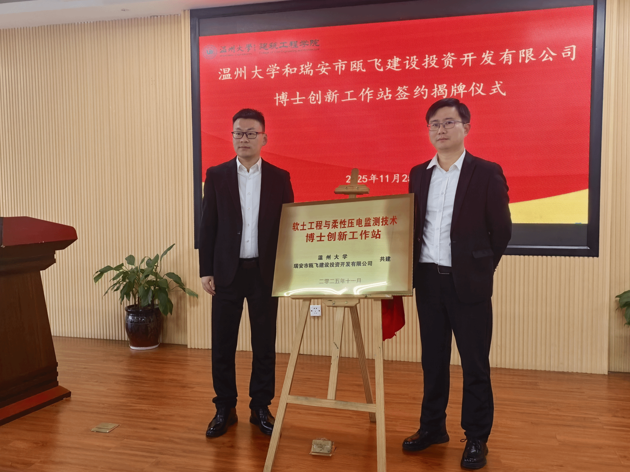 2025年11月25日上午,在瑞安市招商服务有限公司董事长李明枫的牵头对接、全程协调和全力促成下,我院与瑞安市瓯飞建设投资开发有限公司签约共建软土工程与柔性压电监测技术博士创新工作站,并在MissAV
