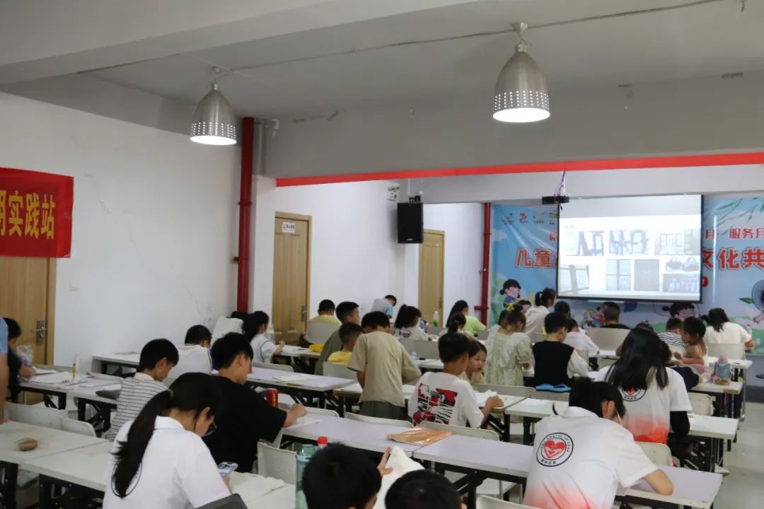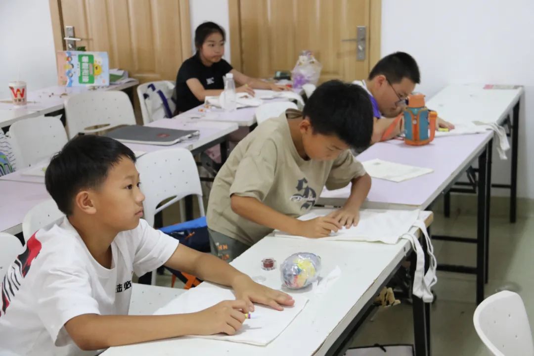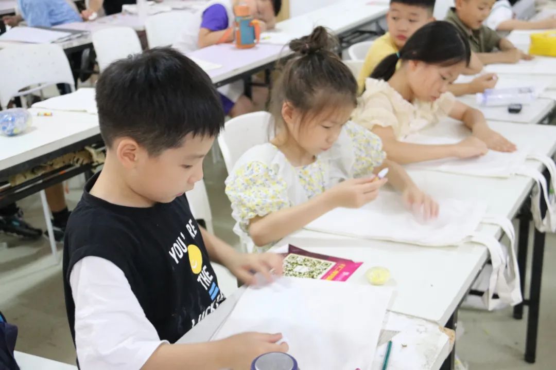 “爱的历程”暑期实践队开展绘“夹缬”之蓝,品创造之美活动,共40名“小候鸟”参加。