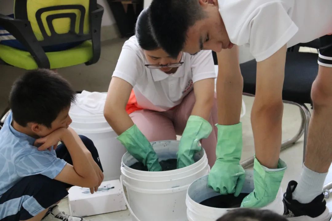 据悉,企业社区本次“儿童友好 与爱同行 文化共传承”系列活动之蓝夹缬课程已经进行了四期。目前,大学生志愿者们带领孩子们系统地学习了夹染、扎染、蜡染,让他们对这门工艺有了更加深入地了解。活动旨在锻炼和提高未成年人的动手能力,激发创新思维和创造力,并传承艺术匠心,让“非遗”制作走进孩子们的生活,零距离感受传统技艺魅力,深化拓展“扣好人生第一粒扣子”“童心向党”主题教育实践活动。