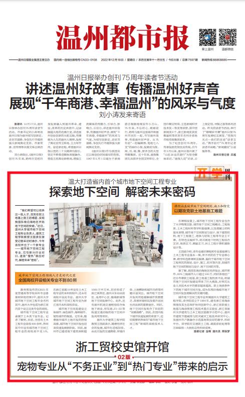 城市地下空间 工程专业负责人,建筑工 程学院教授王国波在接 受记者采访时表示,今年 该校开出了一个新专业 ——城市地下空间工程 专业,它与新兴行业对 口,逐渐“慢热”顺应时 代,解密未来“密码”。