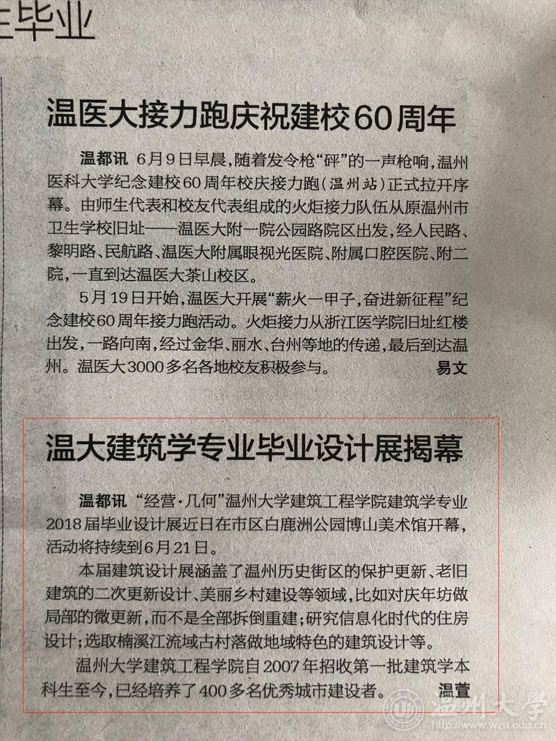 温州都市报:温大建筑学专业毕业设计展揭幕