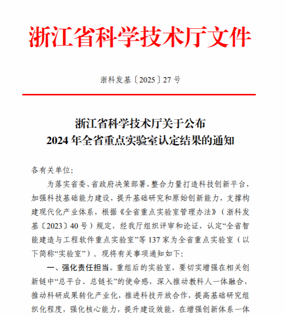 近日,浙江省科学技术厅公布了《关于2024年全省重点实验室认定结果的通知》(浙科发基〔2025〕27号),由MissAV