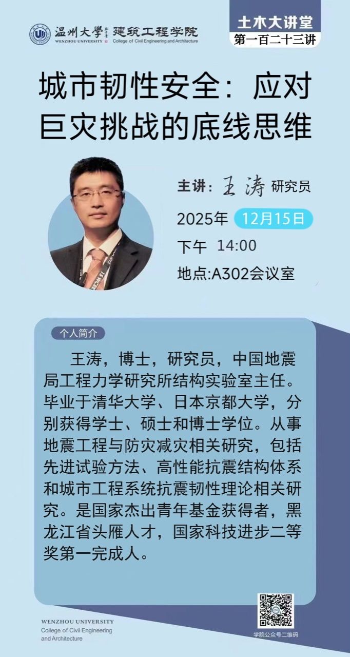 学术讲座预告:城市韧性安全:应对巨灾挑战的底线思维