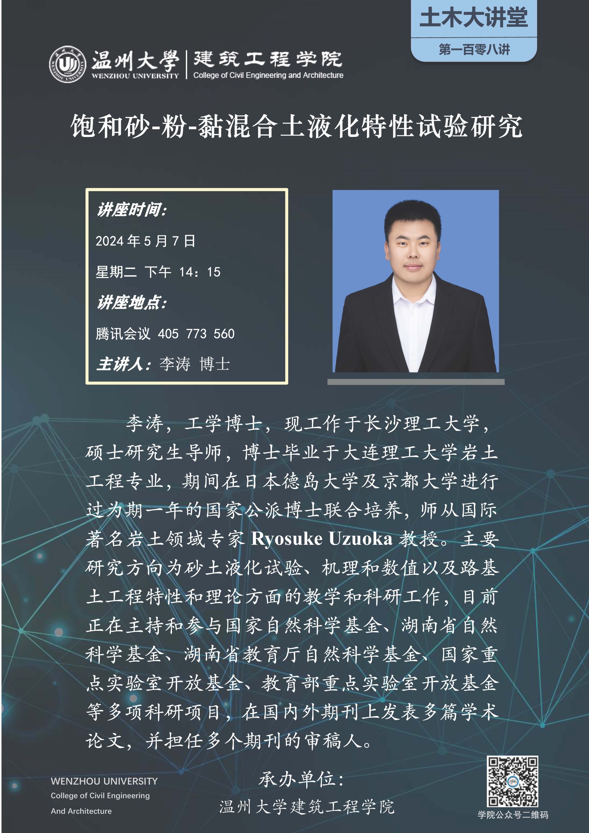 学术讲座预告:饱和砂-粉-黏混合土液化特性试验研究