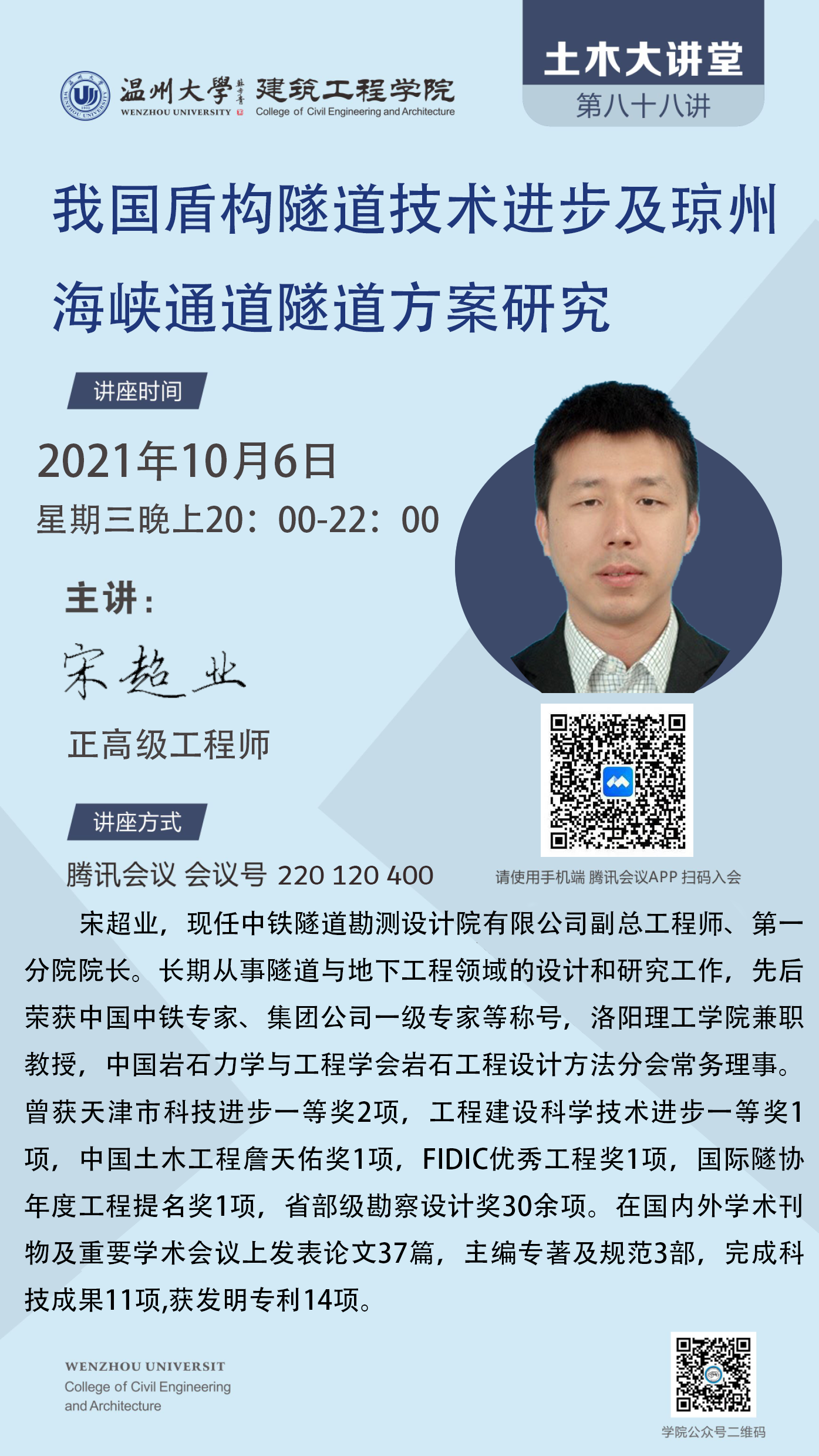 学术讲座预告:我国盾构隧道技术进步及琼州海峡通道隧道方案研究