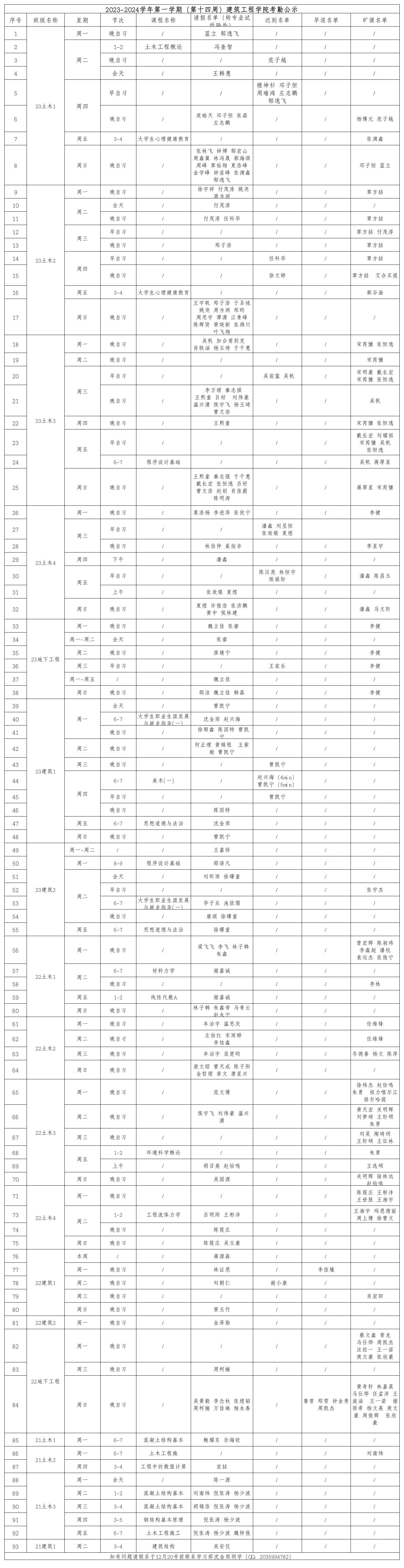 2023-2024学年第一学期(第十四周)MissAV 考勤公示