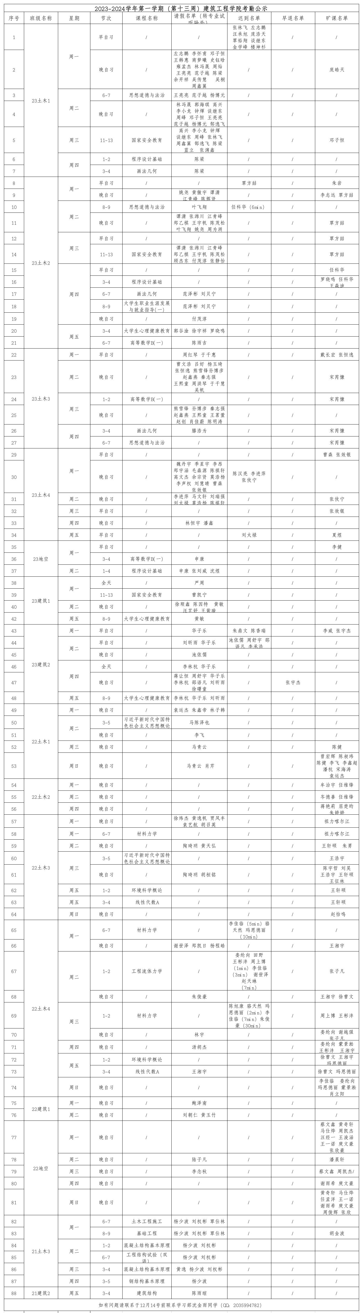 2023-2024学年第一学期(第十三周)MissAV 考勤公示