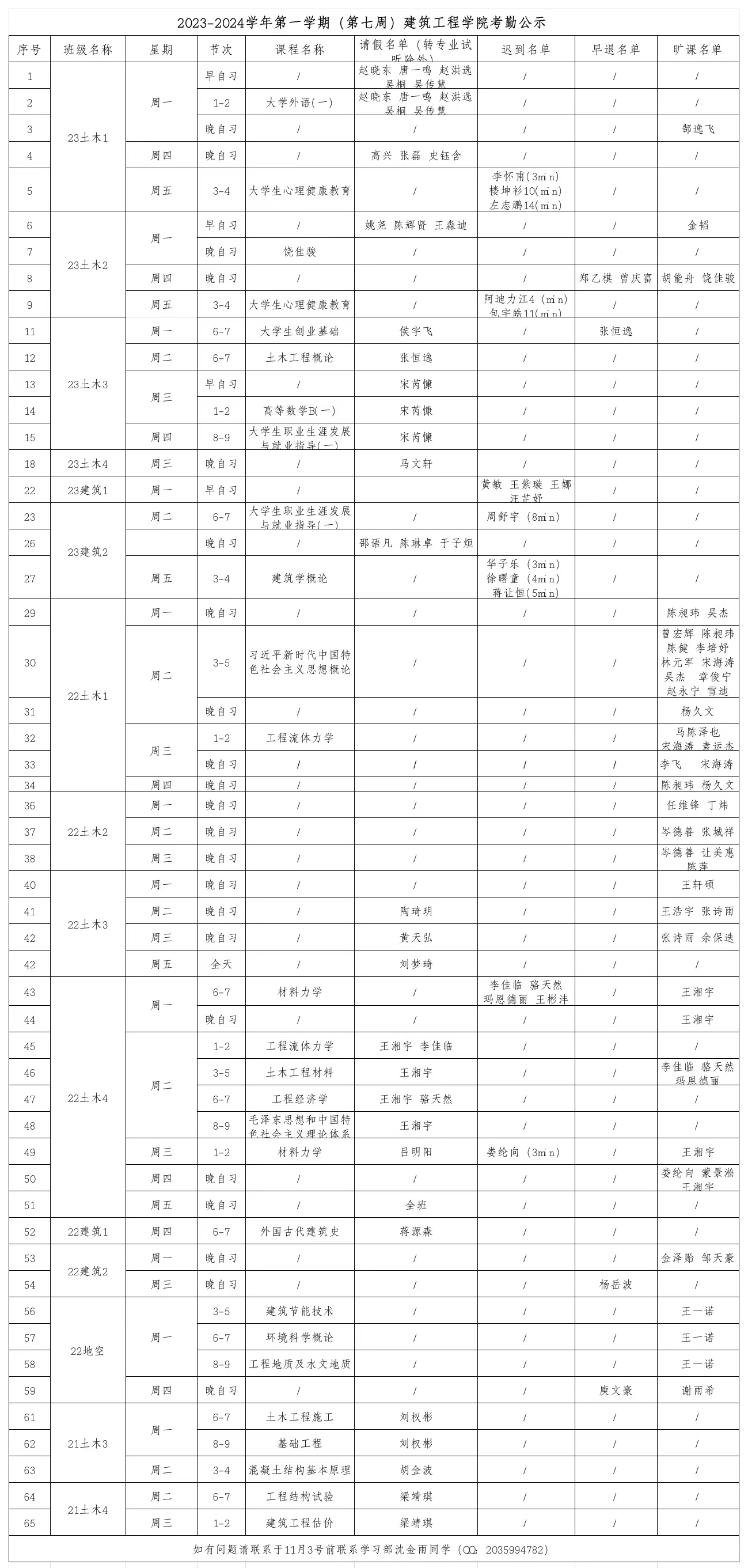 2023-2024学年第一学期(第七周)MissAV 考勤公示