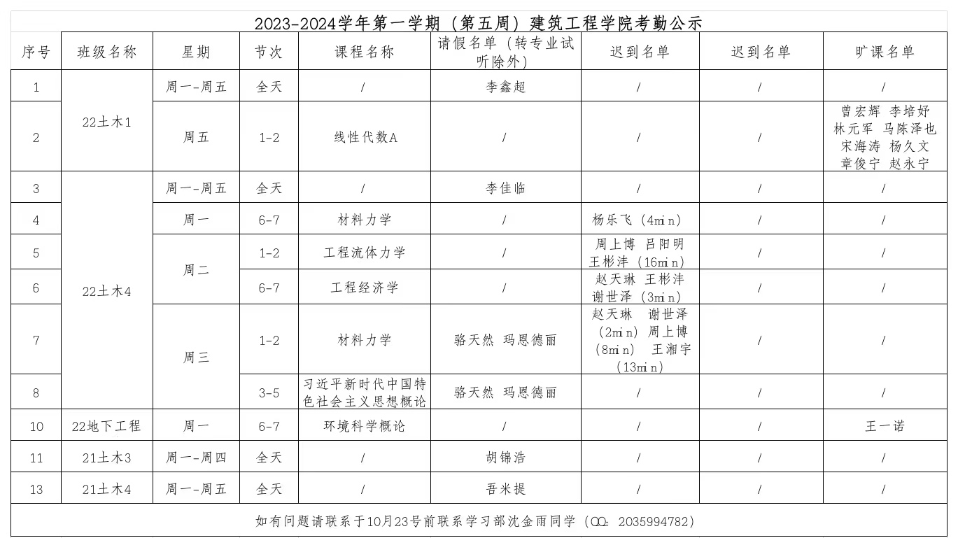 2023-2024学年第一学期(第五周)MissAV 考勤公示