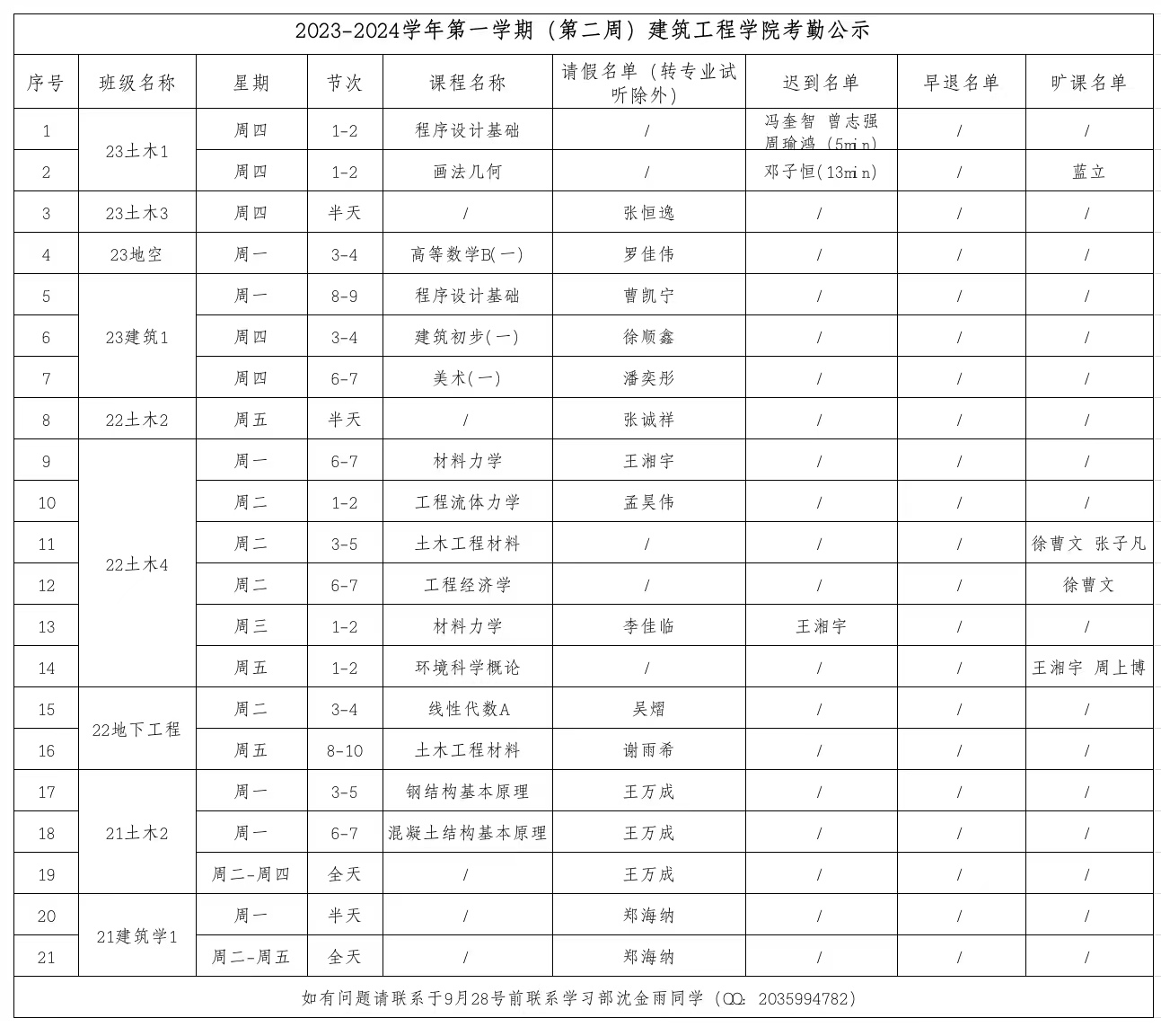 2023-2024学年第一学期(第二周)MissAV 考勤公示