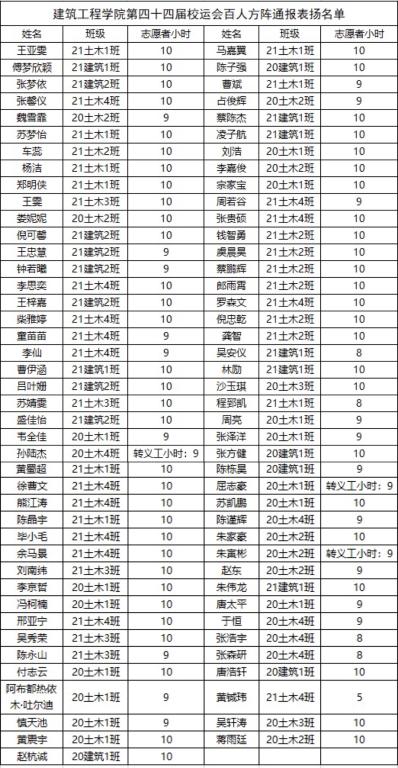 在MissAV 第四十四届田径运动会期间,我院百余名学生积极参与百人方阵团队,刻苦训练。经学院研究决定,在此对参与百人方阵的同学给予通报表扬,并加相应志愿者或义工小时时间,具体名单如下: