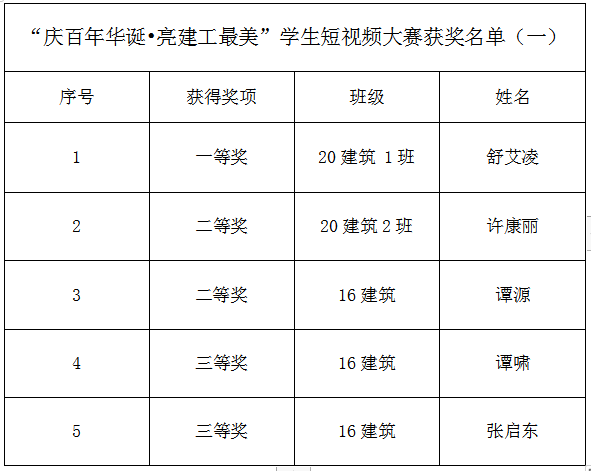 五月“庆百年华诞•亮建工最美”学生短视频大赛第一阶段暂落下帷幕,获奖结果已产生。现将获奖名单予以公示。