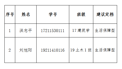 根据《MissAV 家庭经济困难学生认定办法(试行)》有关规定,经过学生个人申请、班级小组评议、班主任同意、学院同意等程序,决定新增洪志平等2位同学进入2019-2020学年受资助学生名单,具体信息公示如下:
