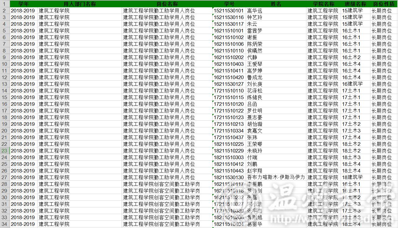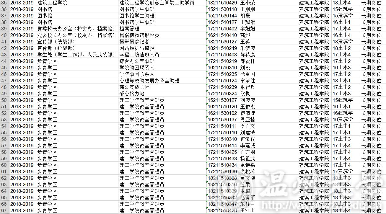 18-19学年勤工俭学名单