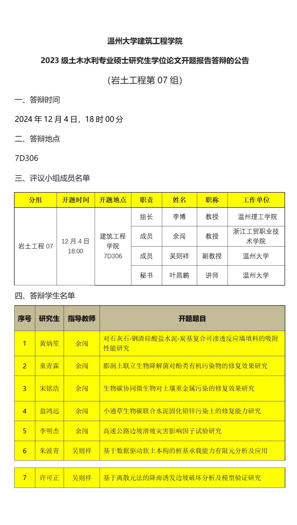 2023级专硕研究生学位论文开题报告答辩公示(八)
