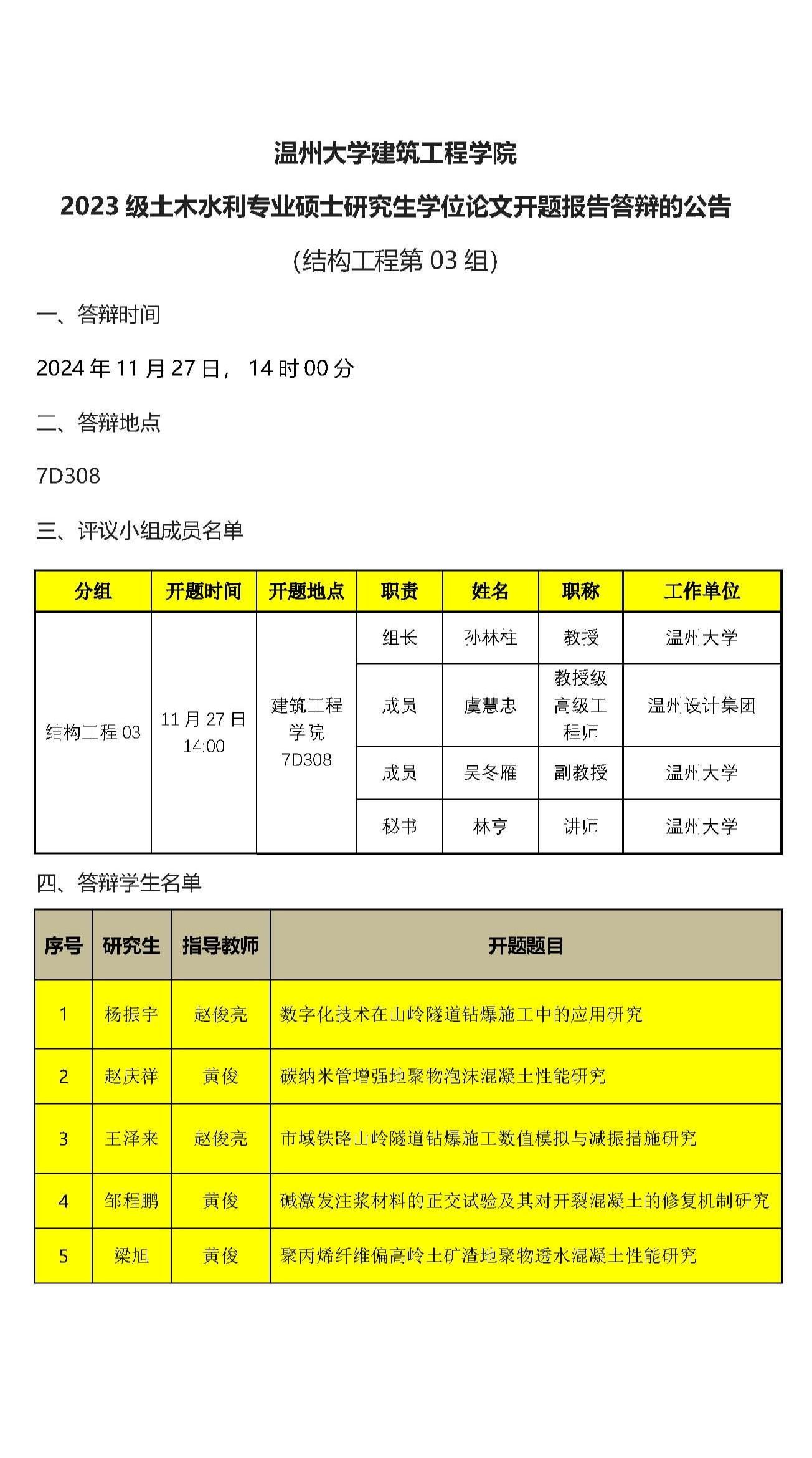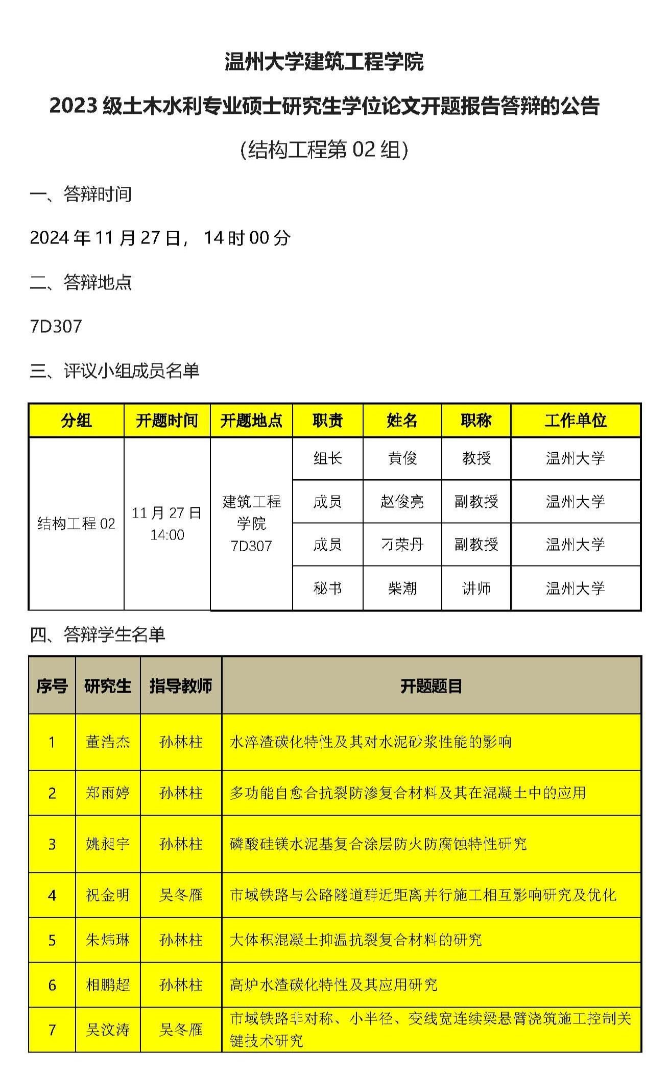 2023级专硕研究生学位论文开题报告答辩公示(四)