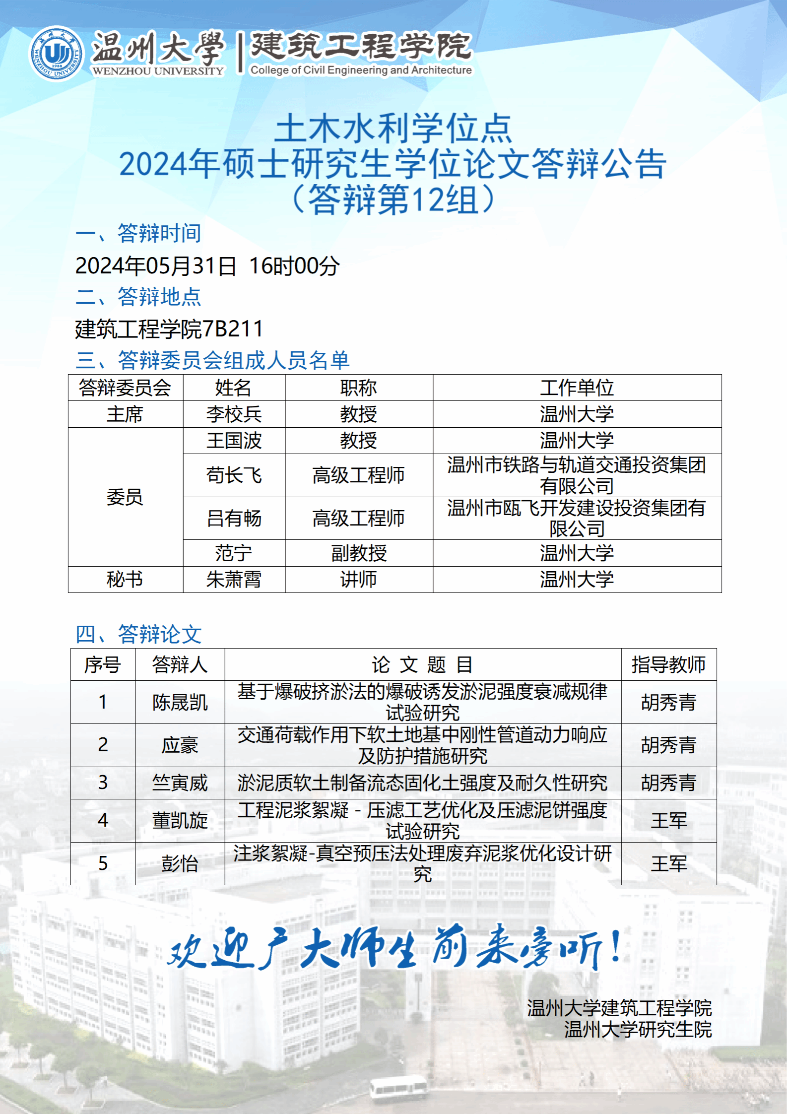MissAV 土木水利学位点2021级硕士研究生学位论文答辩公告(三)