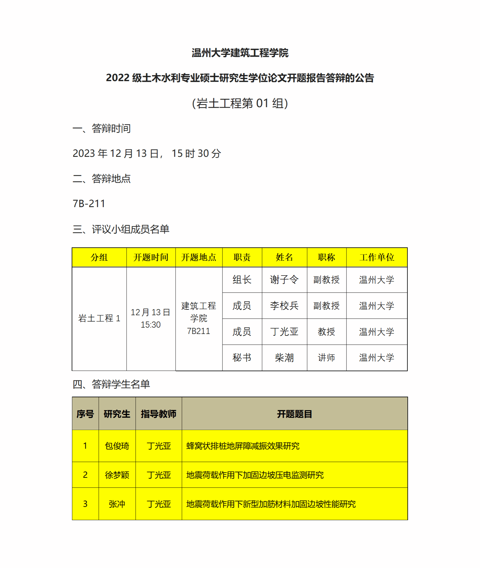 2022级硕士生学位论文开题报告(一)