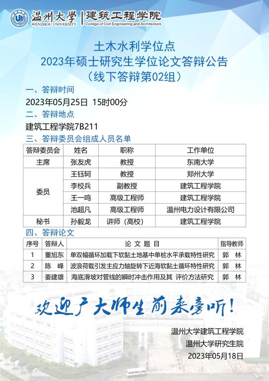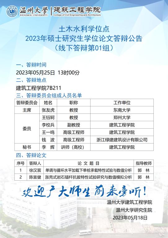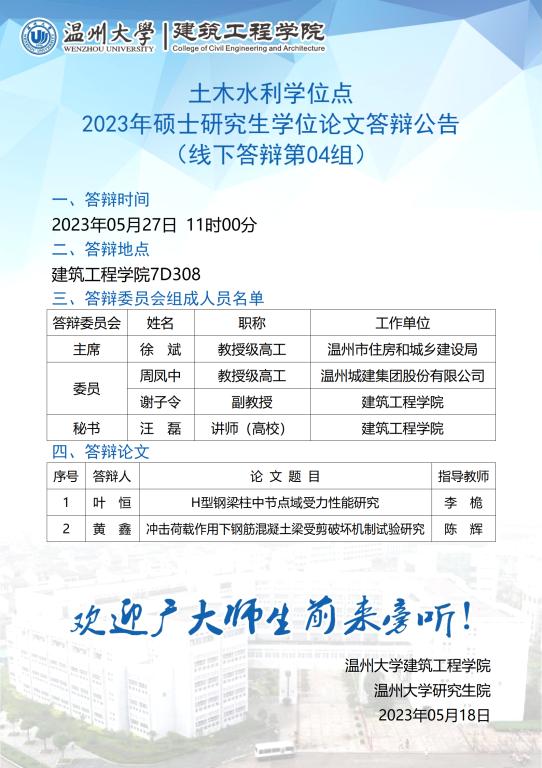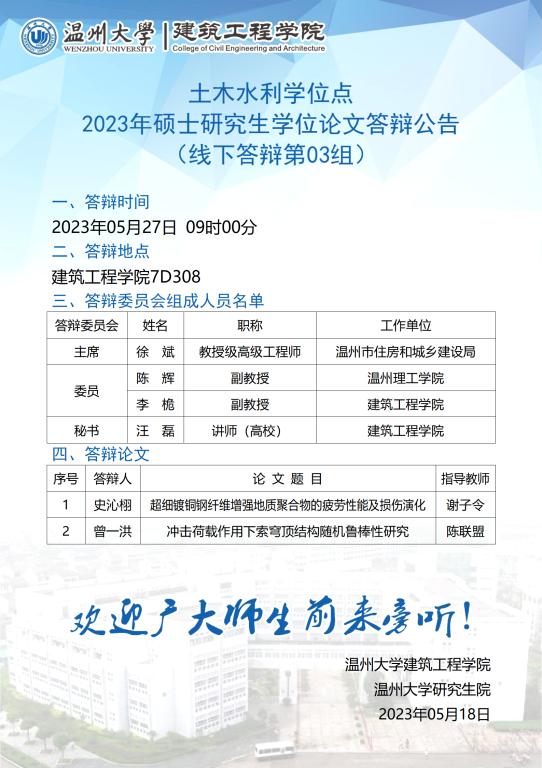 MissAV 土木水利学位点2020级硕士研究生学位论文答辩公告(一)