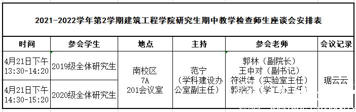 2021-2022学年第2学期MissAV 研究生期中教学检查师生座谈会安排表