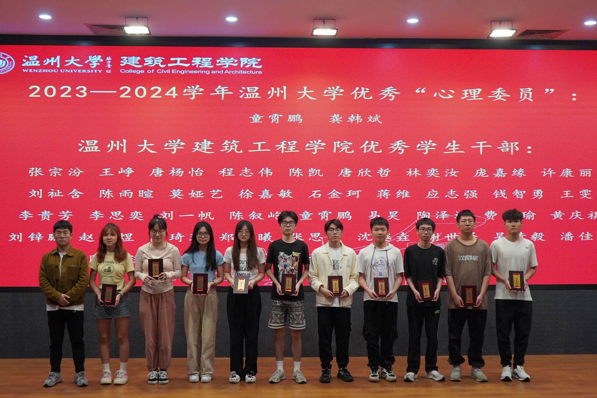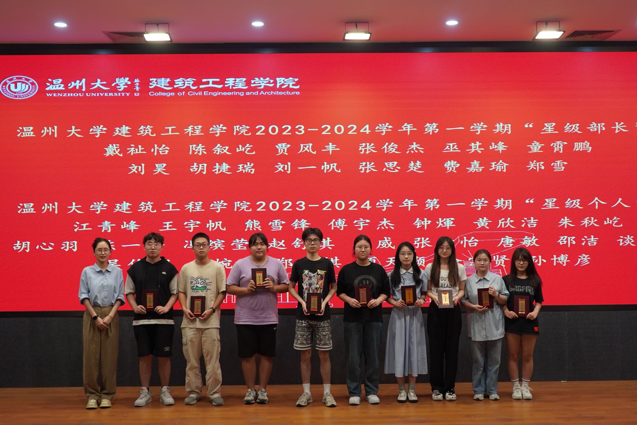 团学指导老师朱宸希宣读学业优秀类、志愿实践类、创新创业和学科竞赛类、文体活动类、优秀学干类表彰名单,激励大家从榜样身上汲取踔厉奋发、勇毅前行的力量。
