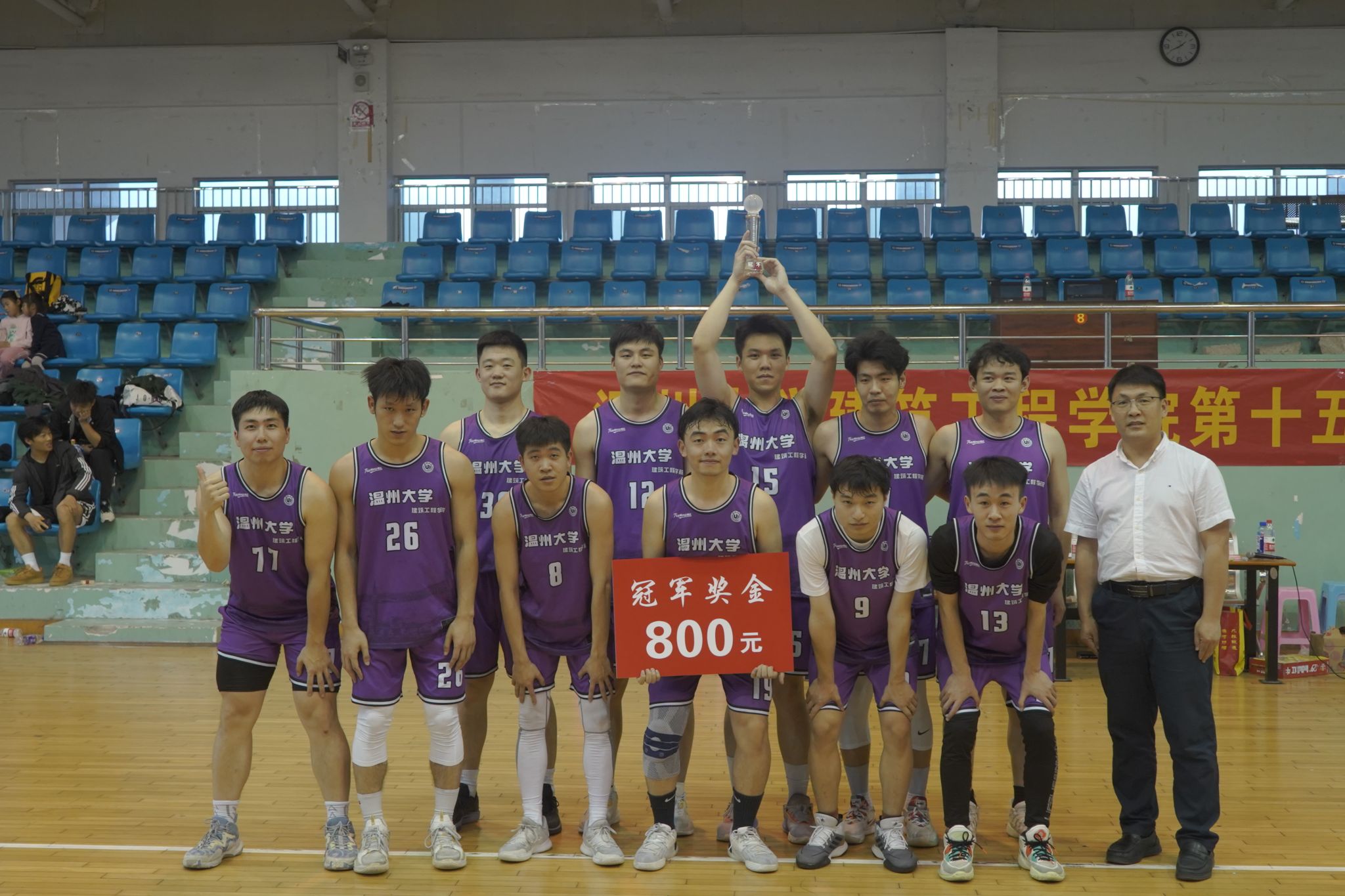 随着裁判的一声哨响,比赛正式结束!从紧张刺激的抢断到振奋人心的扣篮,从默契十足的传球到关键时刻的绝杀,队员们秉持着“友谊第一,比赛第二”的体育精神,在比赛场上齐心协力、挥汗如雨。经过激烈的角逐,22土木水利研究生班夺得冠军,21土木3-4班获得亚军,21土木1班获得季军,吴亮宇荣获总决赛中“最有价值的球员”称号。