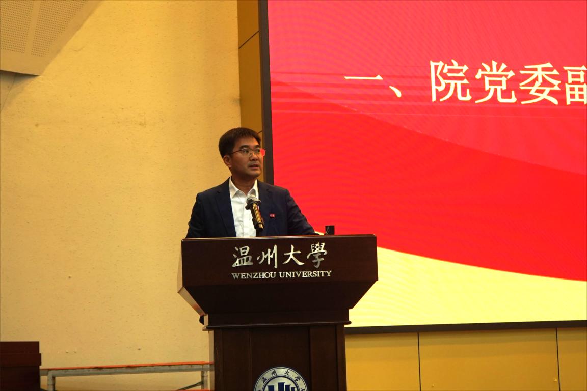 王中对副书记致辞。他结合案例深刻阐述文化软实力建设的重要性,指出我院一贯高度重视文化建设,以及近年来所取得的成绩。他强调,我们每个人都是学院文化建设成果的受益者,也是学院文化建设的实践者,更是中华优秀传统文化的传播者、弘扬者。他希望,全体同学要积极主动参与学院文化节活动,实现自我提升;全体学生干部要积极主动作为,共同举办好学院文化节盛宴;指导老师要悉心指导,突出寓教于乐,注重活动细节,充分发挥以文化人、文化育人功能。