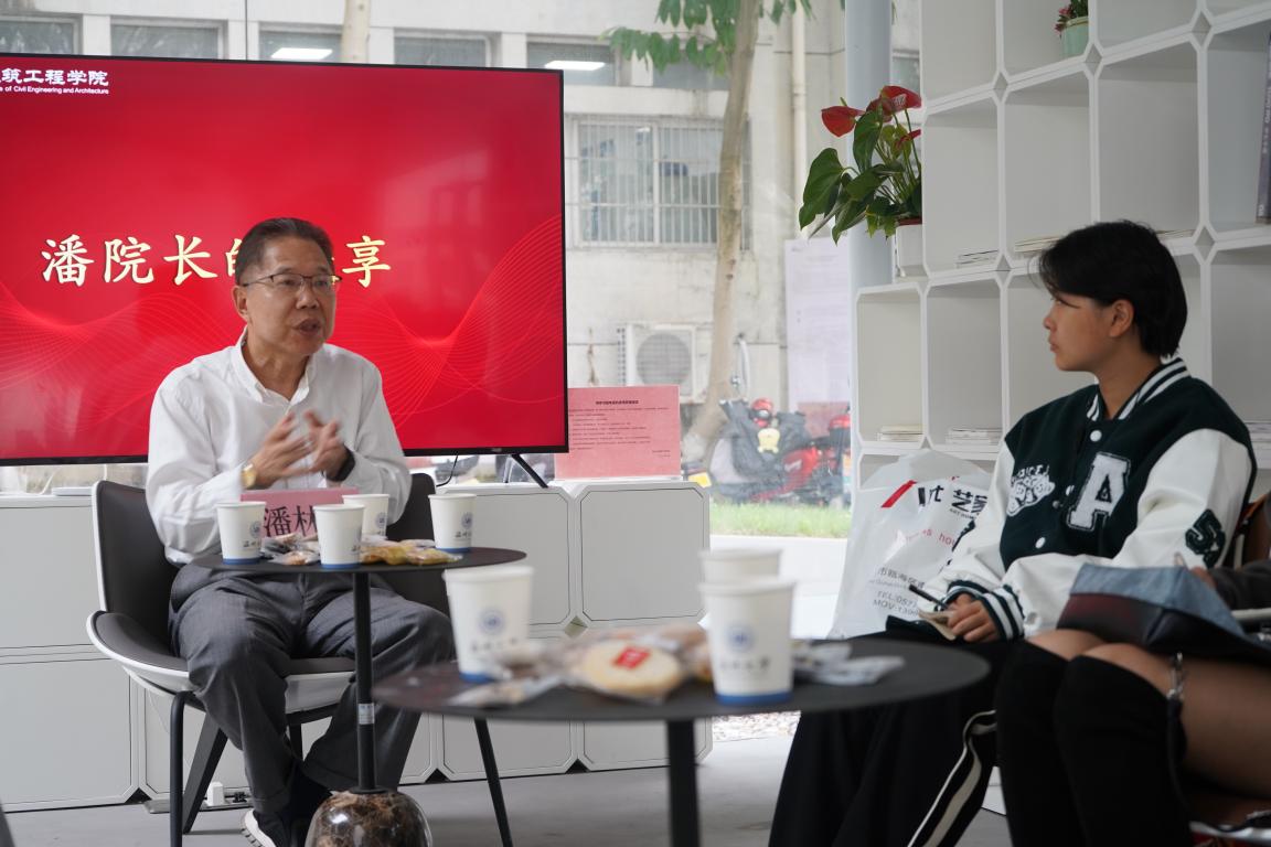 原院长、原书记潘林有教授前来分享。此次茶话会由学工办主任、团委书记郭瑞芬主持,辅导员朱宸希以及部分22级、23级参会。