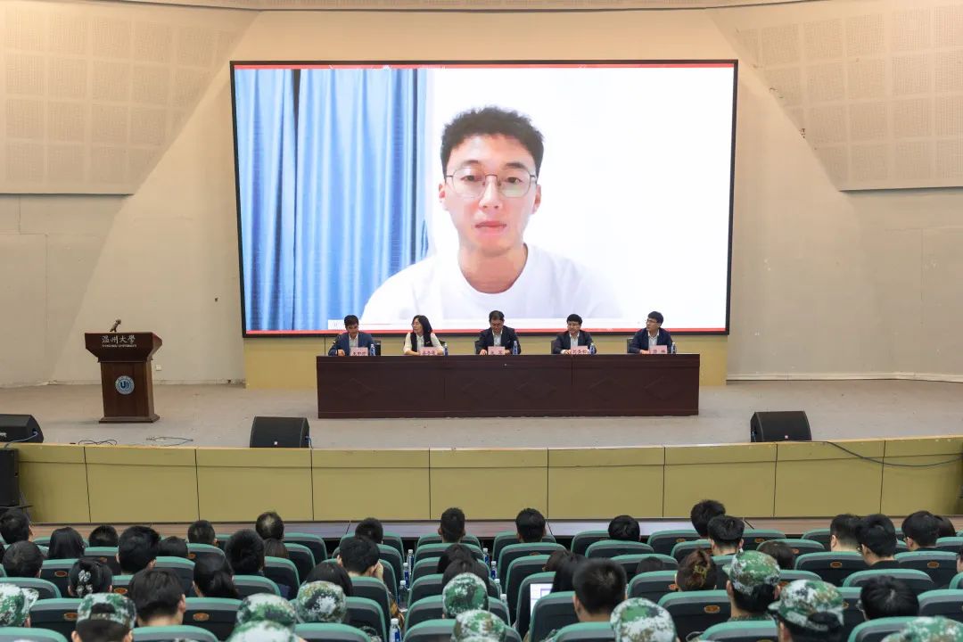校友代表发言。我院2020届土木工程专业本科毕业生、2023届土木水利毕业研究生、武汉大学在读博士朱炜豪校友通过视频,与学弟学妹分享自己在本硕期间学习生活工作中的心得体会,一是要学会学习;二是要学会做人;三是要学会规划;四是要锻炼身体,并勉励同学们志存高远、躬身实践、追求卓越。