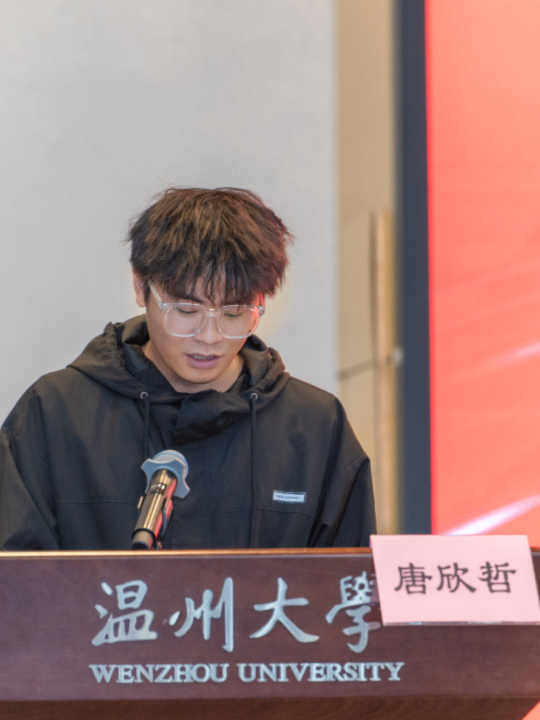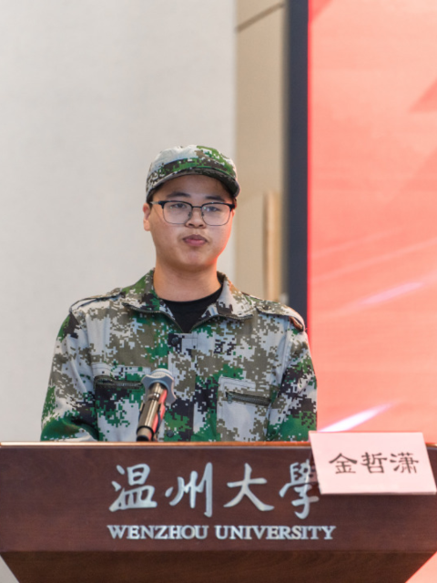 新生代表发言。来自2023级土木1班的金哲潇作为本科生新生代表诉说出了新一届建工学子立志于追寻梦想、奋斗拼搏的决心,践行“为学应尽毕生力,攀高应在少年时”的苏步青院士寄语的信心。