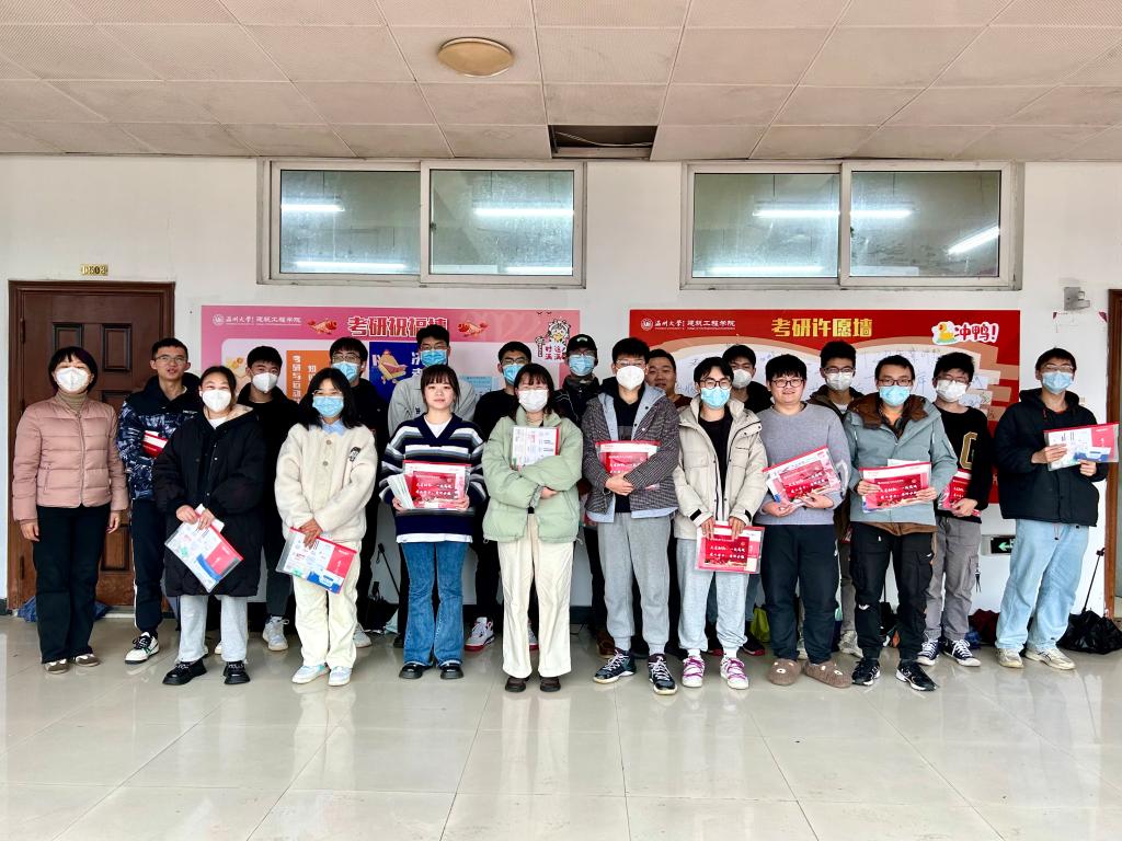 学工办主任郭瑞芬、辅导员黄骑骥、辅导员杨程程老师走访慰问了正在备战考研的同学们,并送上了考研文具套装和口罩。