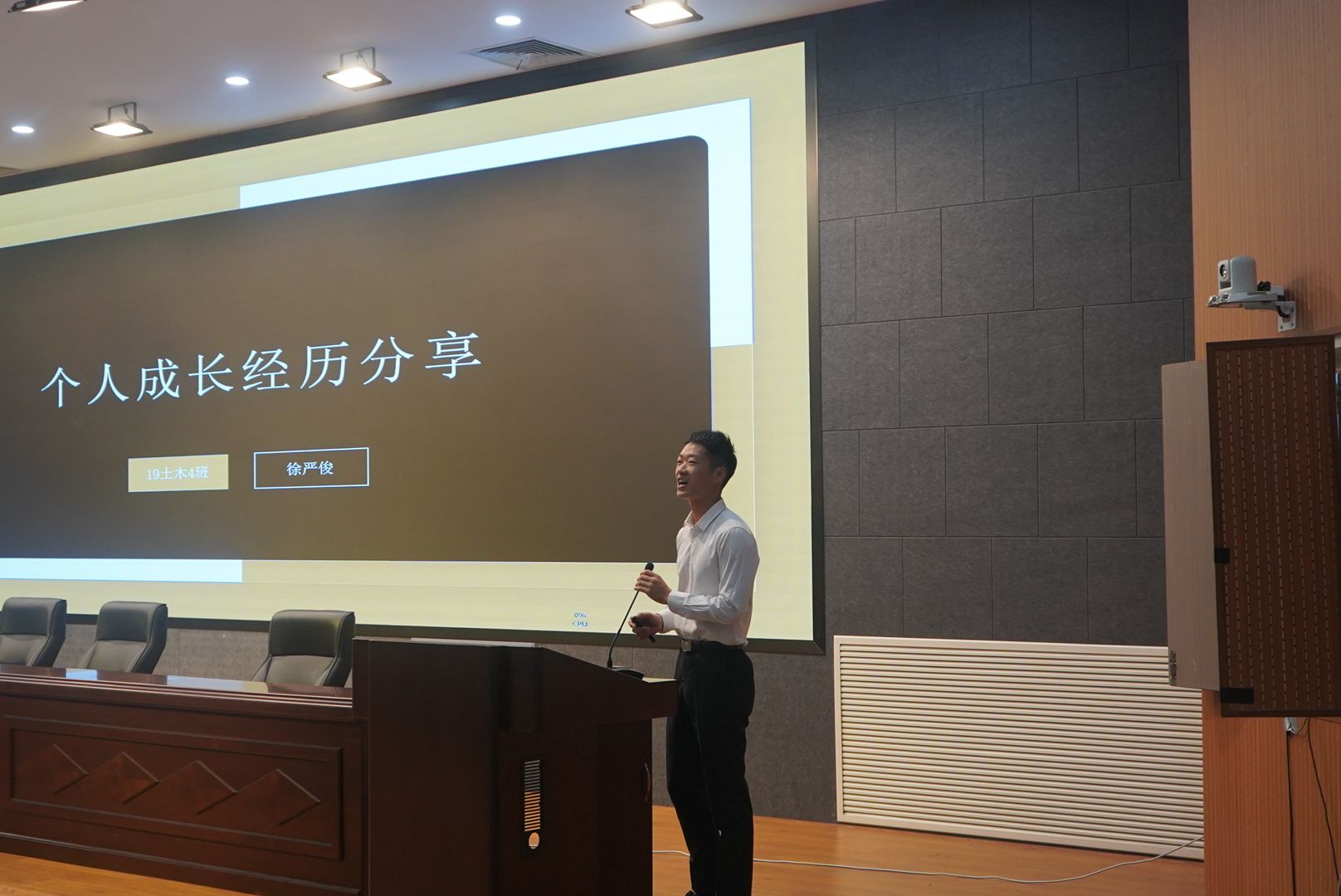 生活小窍门;19土木4班徐严俊学长则与大一新生们分享了属于他的成长故事,同学们与徐学长积极互动;最后,19土木3班薛文伟学长带来《建筑“筑”建“榕”耀 与你同行》的宣讲,为大一新生提供了很多宝贵的经验。