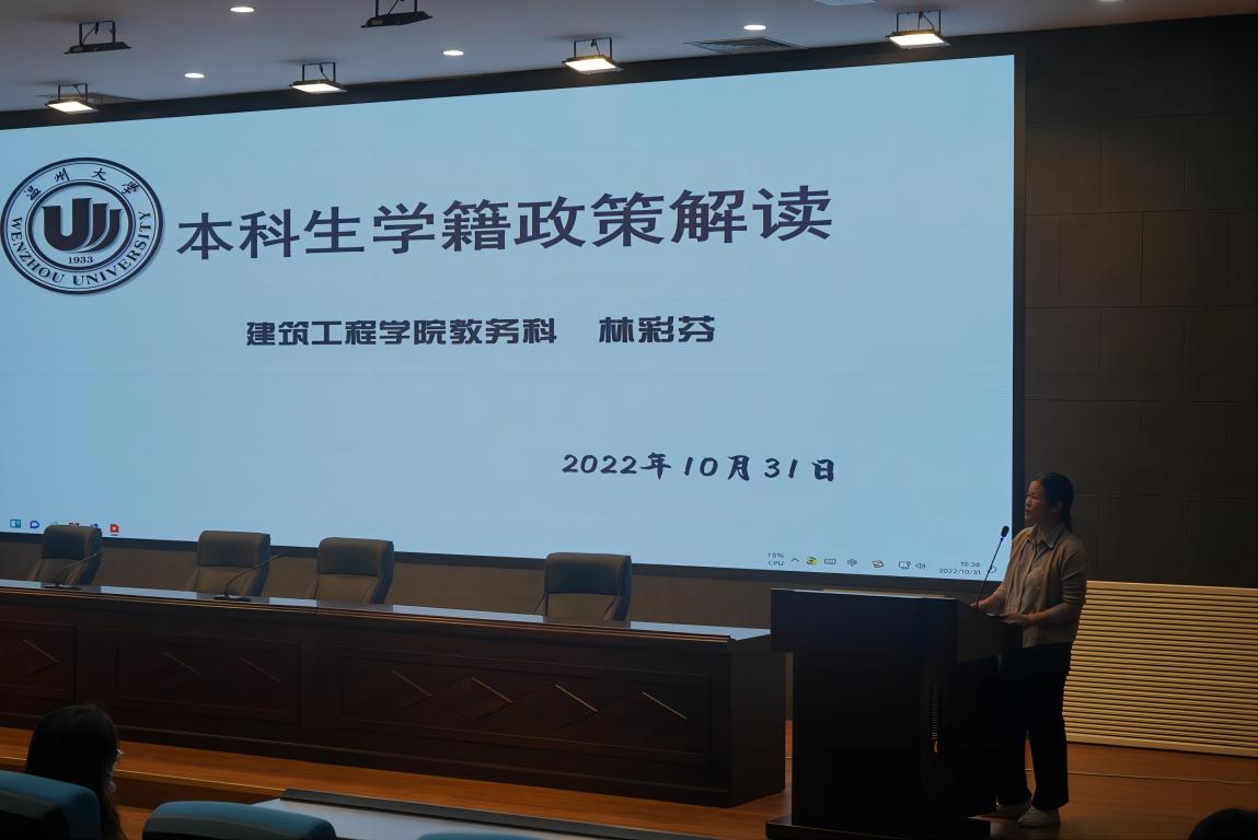 讲堂伊始,由林彩芬老师为大一学生进行了始业教育,其详细讲解了学校学籍管理、学分制管理、课程重修、选课管理、转专业条例、课外教育项目和学分管理等方面规章制度。