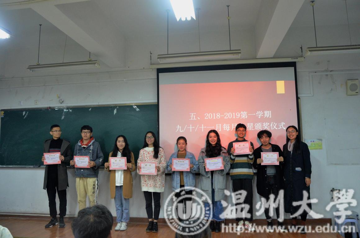 潘莉莉老师首先对此次团建活动中大家优异的表现表示肯定,并期望团学的成员能够多参与活动,通过比赛让自己更出类拔萃。同时她希望每个大家不要被固有的思想所束缚,要多发表自己的见解,多与老师沟通,不断为团学增添新的活力,并为2018-2019学年第一学期九、十、十一月份每月之星颁奖。在大家对获奖者由衷的祝贺声中,迎来了大会第六项议程,为建工团学第一次团建活动前三名颁奖。希望能够借此来鼓励大家积极地参与到各项活动中来。