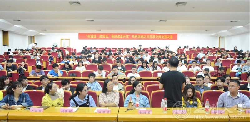 4月14日,为庆祝改革开放四十周年,我院继第二届“建工奇谈”辩论赛后联合化学与材料工程学院以及数理与电子信息工程学院于岩松堂步青厅成功举办了“树诚信,助成长,喜迎改革开放”系列活动之三院联办辩论赛总决赛。