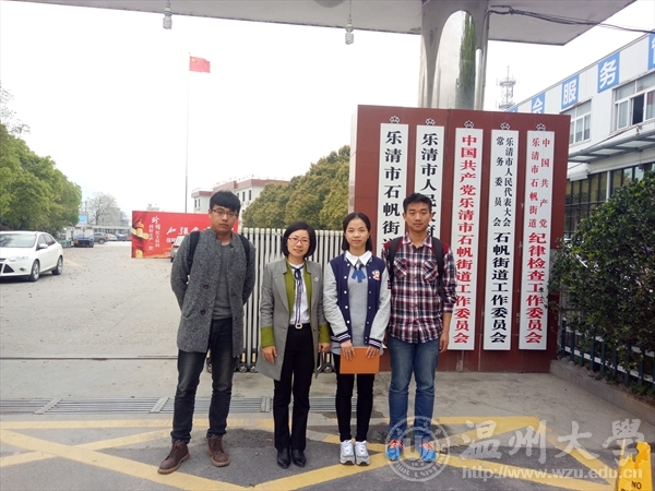 为积极响应市第十二次党代会提出前面深化“五水共治”,重点围绕剿灭劣V类水的目标,充分发挥大学生专业特长和社会责任感,为助推美丽温州建设贡献建设贡献青年力量。我院成立了“新青年下乡”治水剿劣青鸟实践队来到乐清石帆镇街道进行考察。在石帆街道团委书记朱启娇和党工委委员王珍珍介绍下,我们了解到当地目前治水剿劣的情况,石帆街道也在当地宣传治水剿劣需要全民参与,一起坚决干净彻底剿灭劣V类水。此外,王珍珍也为我们介绍了石帆镇的当地的特色,让我们实践队骨干对石帆镇的当地文化有所了解。我们一同走访了村民活动中心,狮子山以及刘黻故居等当地文明单位进行实地情况的了解,感受到石帆镇当地的特色文化。