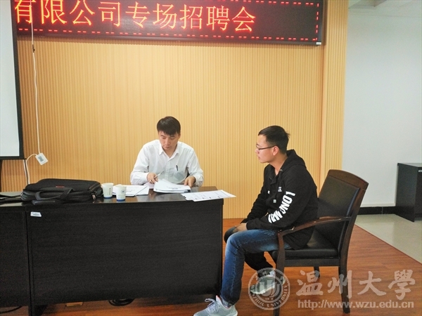 紧接着,有意向应聘的毕业生填写了文件资料,并就此与该公司的负责人进行一对一的交流面试,对彼此都能有深入的了解。会后,负责人还向部分应聘者讲述了就业后的一些行业现状,便于毕业生们更快地了解行业,提早为就业做准备。