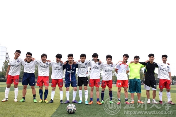 此次比赛,我校球队阵容庞大,更有我院的几大精英强强加入。担任中后卫的敖登智、负责后腰的魏然、作为门将的陈杨、以及冲在前线的张鑫达、张璐和范满意。他们多日的艰苦训练,为的就是浙江省大学生足球联赛场上的崭露头角。