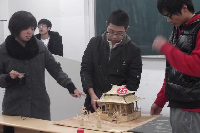 本次大赛有56组作品参赛,经过初步筛选,共选出21组火柴作品进入决赛。大赛首先由主持人黄丰强详细介绍本次大赛的评分规则和评分答辩方式。接着,答辩正式开始,每一组参赛选手分别有2分钟的作品介绍时间,之后由评委提问,最后由各个评委打分。所有作品答辩完毕之后,由大众评委投票选出“我心中的作品”。现场工作人员唱票,统计分数。最后由姜稳得、唐晓红、叶银霖组的“馨梦园”作品获得一等奖。由团委书记徐家博为获奖选手颁奖。本届火柴艺术大赛圆满结束。