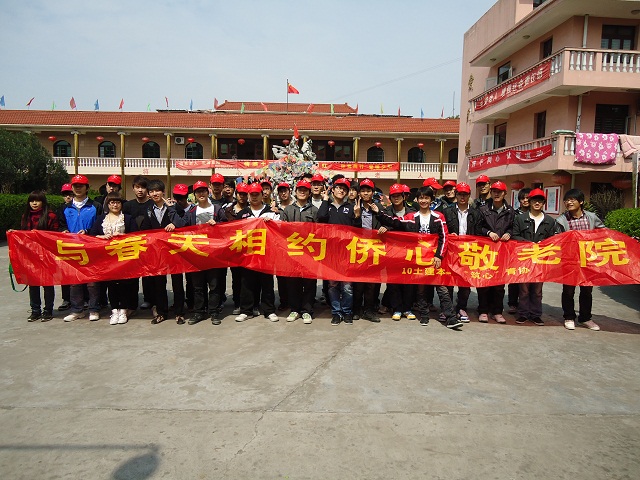 3月16日中午12点50分,10土建本一全体同学于温大南门集合,共赴侨心敬老院参加“与春天相约敬老院”活动,顺利圆满的完成了任务。