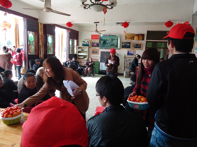 在途中,10土建本一的志愿者们兴致勃勃,表达了年轻人的活力和对老人的一片关爱。到敬老院后,志愿者们表演了《爱情公寓》中诸多爆笑给力的片段,将欢乐送到每位老人的心里。他们还演唱了《爱情买卖》 《都是你》等一系列为人熟知的歌曲,老人们的兴致很高,掌声不断。有位老人也为远道而来的志愿者们准备了节目,当一曲悠远的二胡曲目完毕后,志愿者们都由衷的发出了称赞。期间,10土建本一的志愿者们和老人进行了游戏互动,将互通有无的氛围推向高潮。